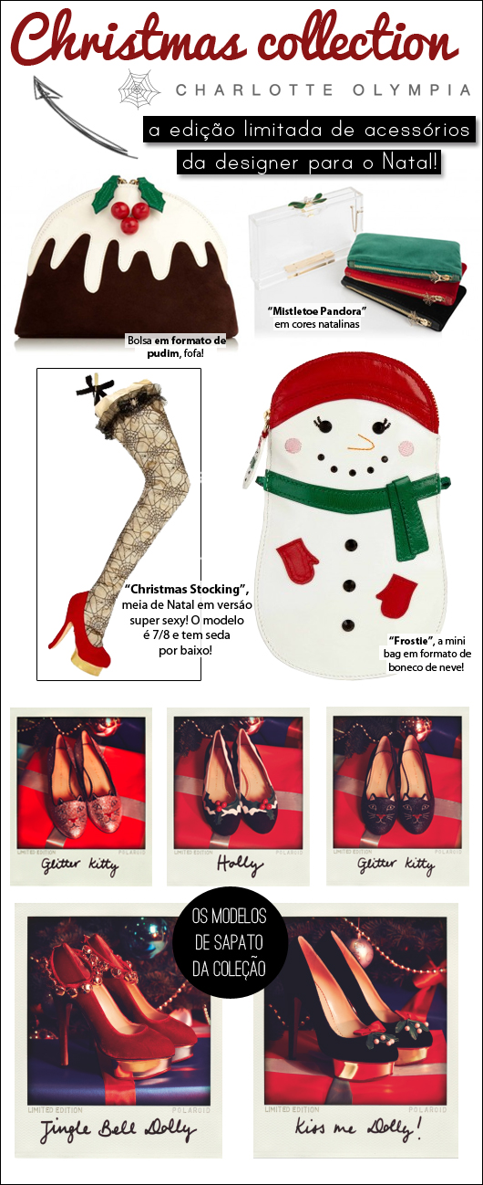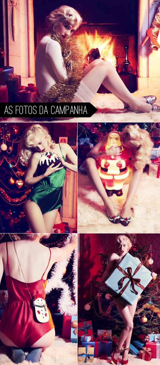Tem bolsa em formato de pudim, de boneco de neve, as “Pandora’s” em versões com cores natalinas, a clássica “meia de Natal” só que em versão feminina e super sexy… Sem contar os sapatos, um mais fofo que o outro!