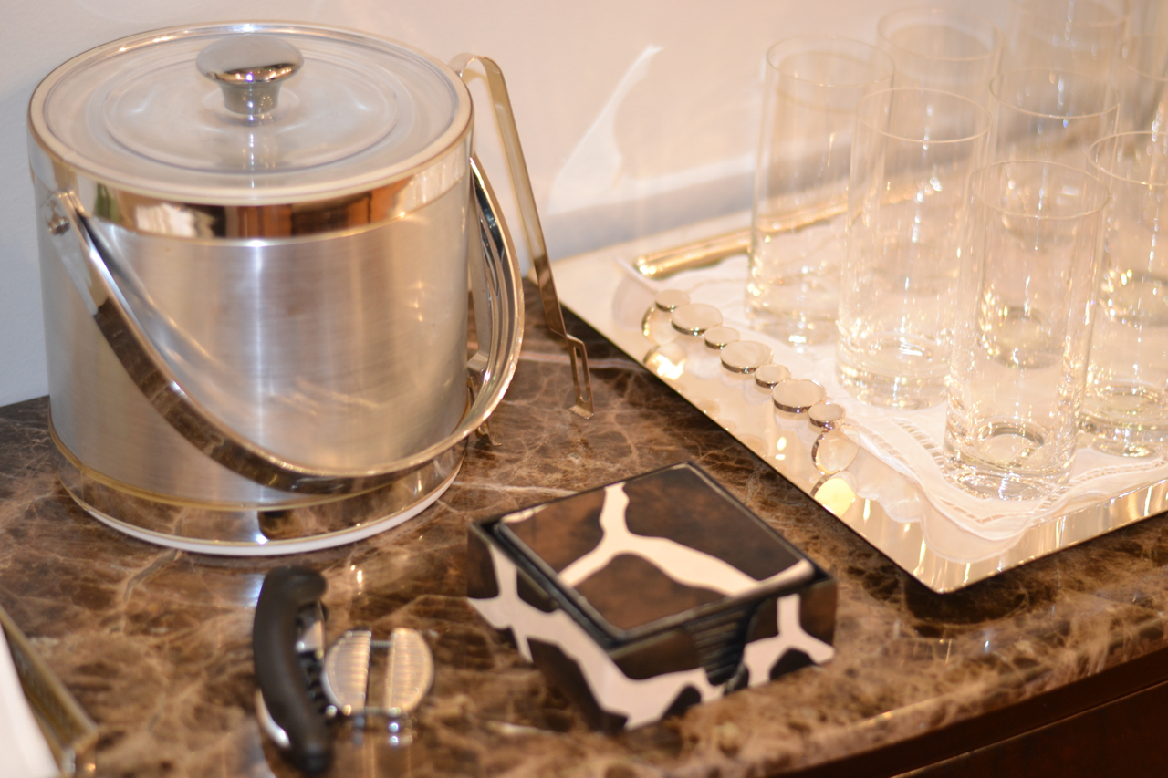 3 – Aparador de bebidas: um investimento incrível que eu indico muito! Mesmo que o jantar/almoço/encontro tenha garçom, acho bacana deixar um cantinho disponível para os convidados se servirem à vontade. Esse apoio facilita para todos e deixa mais pessoal, sabe?! É bacana proporcionar essa liberdade, além de ajudar na circulação e ficar um charme!