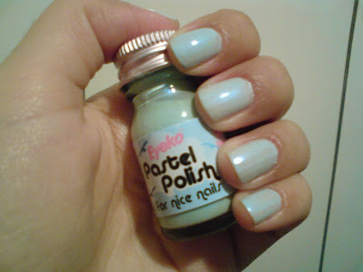 Essa semana resolvi continuar na onda do esmalte pastel e apostar no azul bebê a lá Rihanna. Como já tinha lido váaarios posts na blogsfera sobre o esmalte “Pastel Polish” da Eyeko e repetidas vezes li que ele era ralo, difícil de passar e que não cobria bem, resolvi não encomendar um, mas fazer o meu.