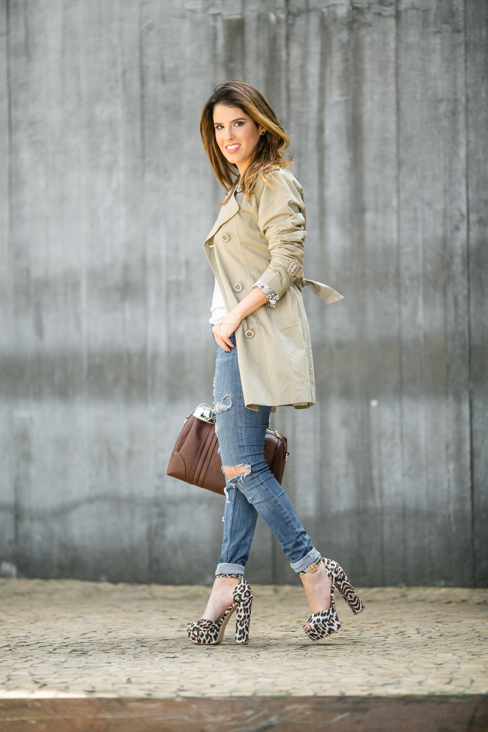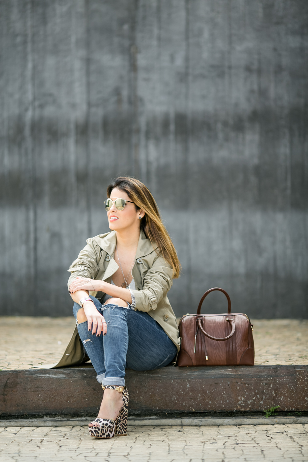 Dando o up no visual, o trench coat da Morena Rosa e sandália poderosa de onça da Carmen Steffens.