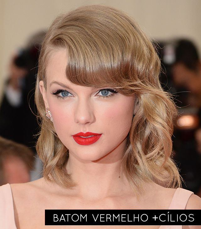 Batom Vermelho + Cílios: Sei que muitas de vocês não abrem mão de uma boca vermelha, né? Nada melhor que apostar nela + cílios postiços poderosos! O efeito é super glam!
